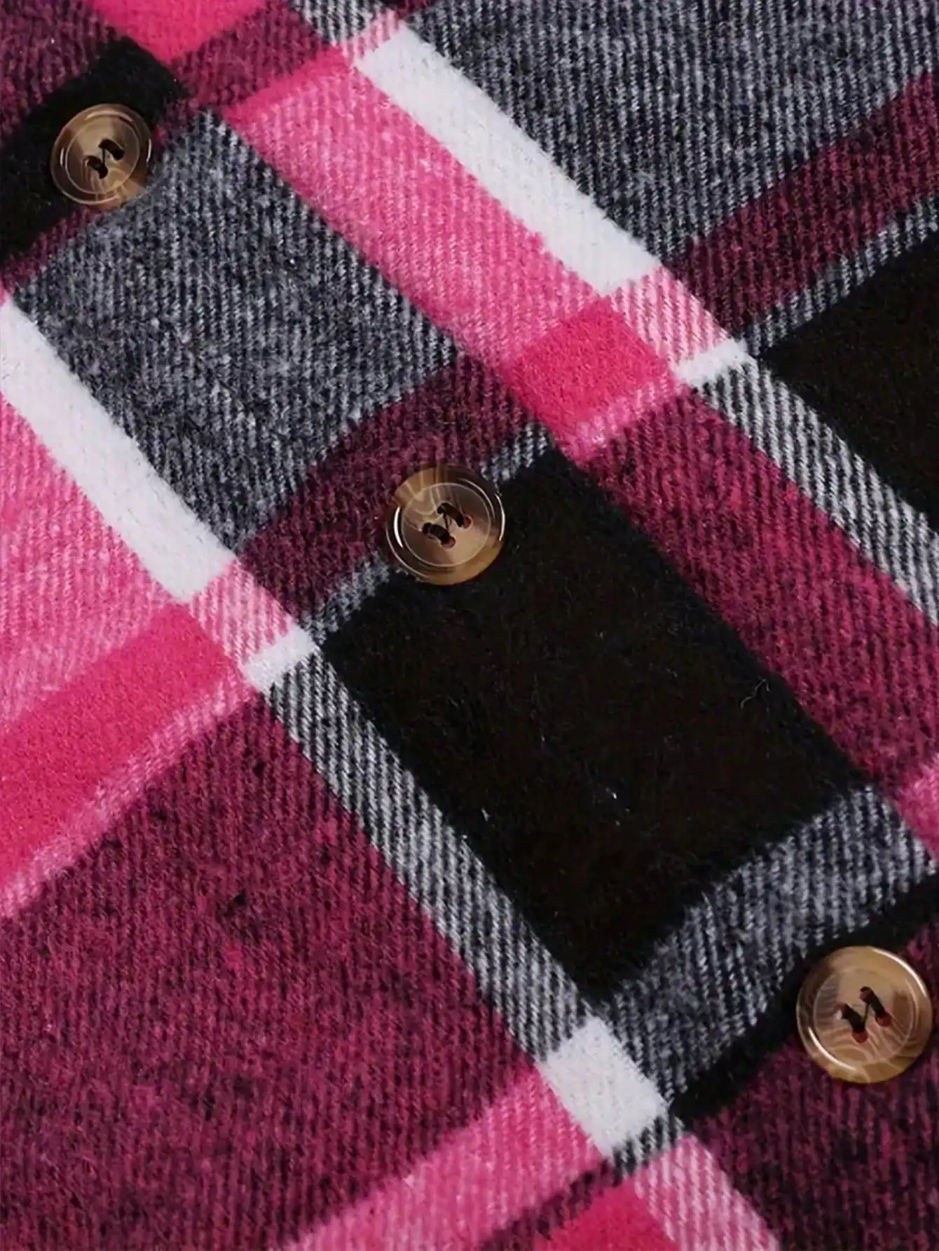 2025Women's Long Sleeve Flannel Shirt Plaid Button Down Oversized Shacket Cardigan Casual Winter Valentine's Day Outfit