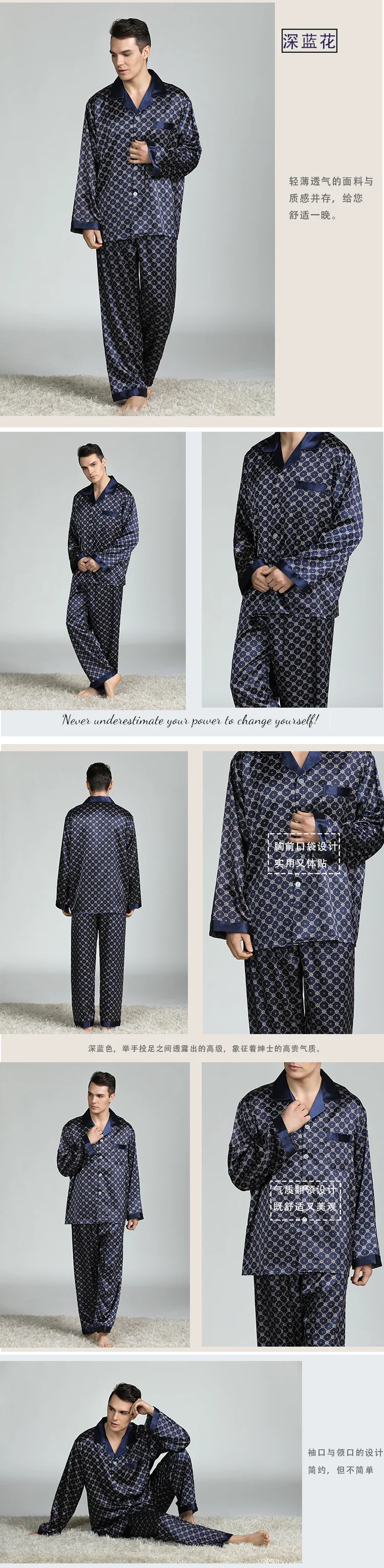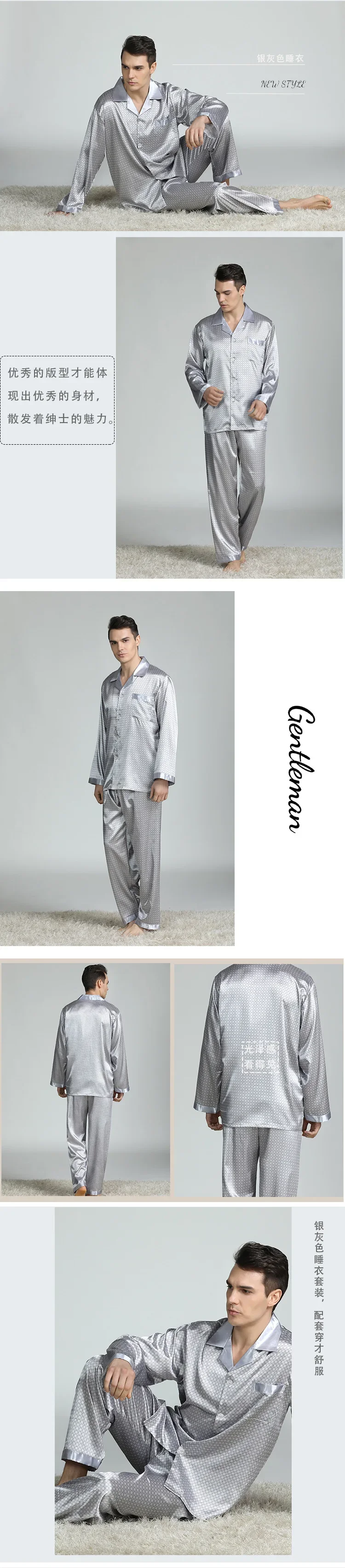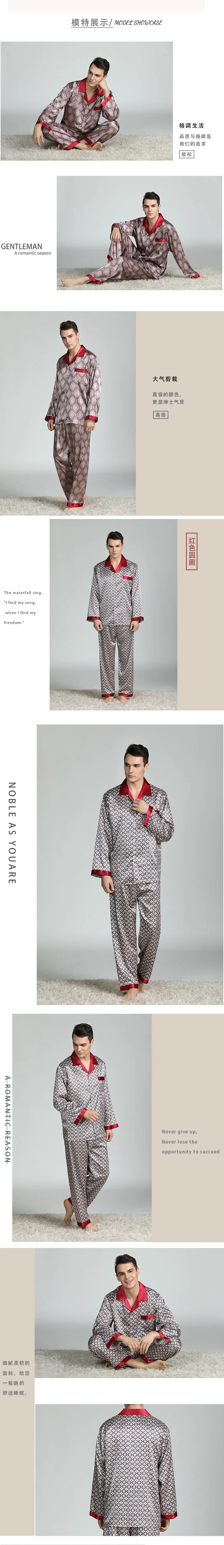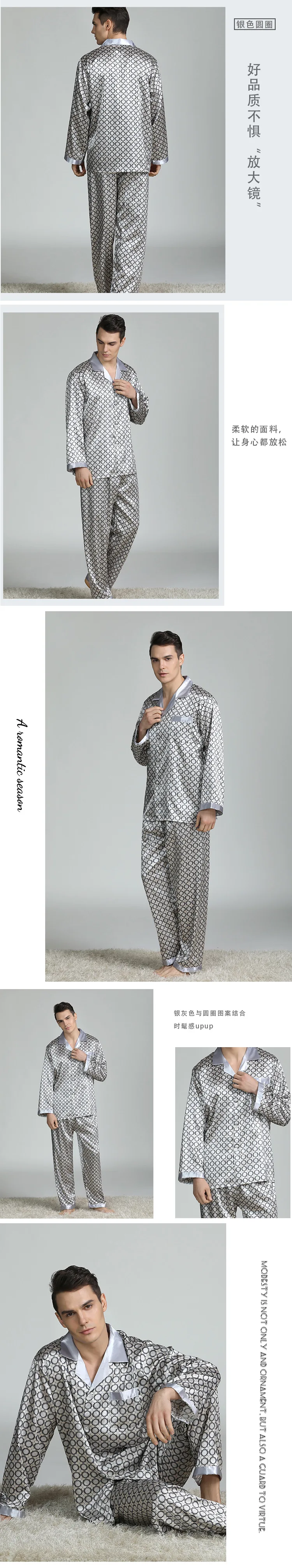Men's Pyjamas Spring Soft Cozy Long Sleeve Sleepwear Set Thin Ice Silk Satin Nightwear Suit Male Top Pants Home Clothing Pajamas