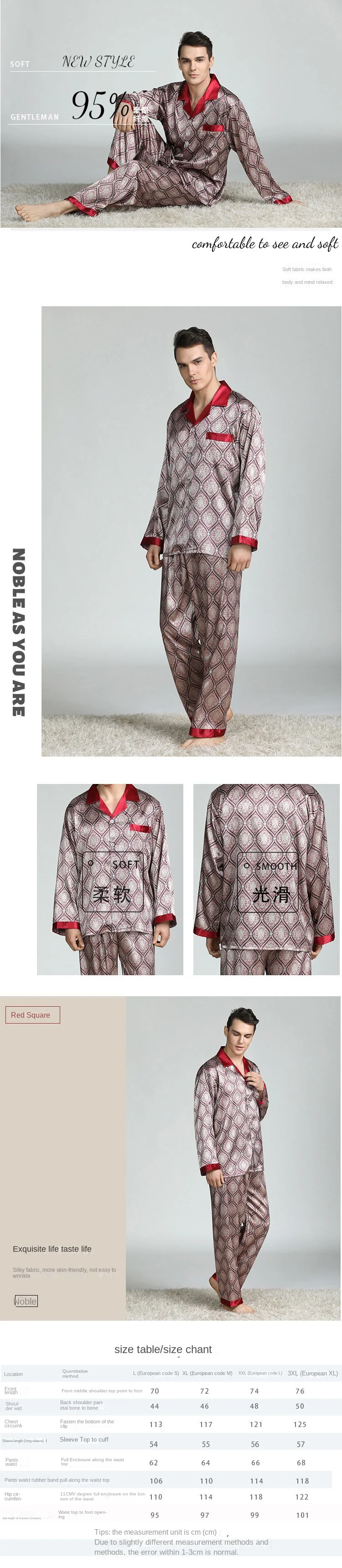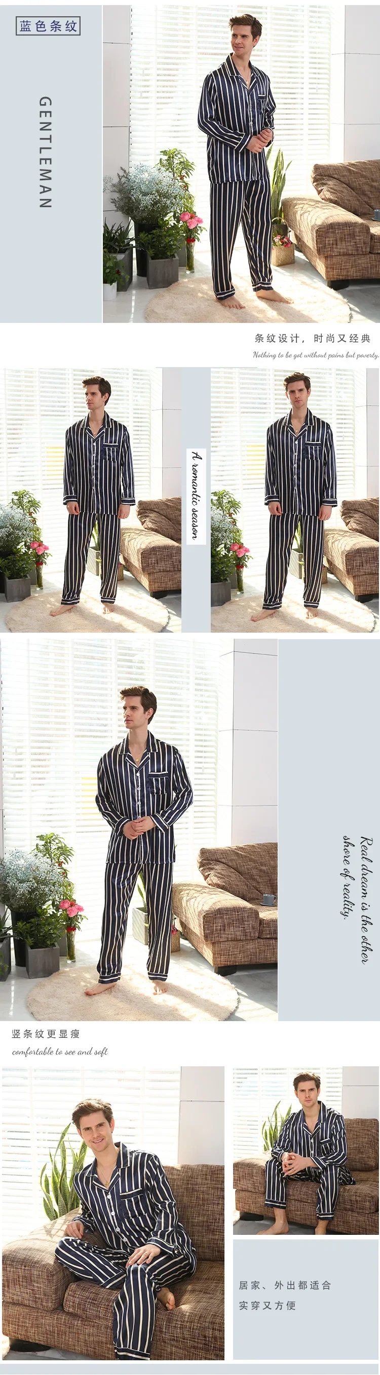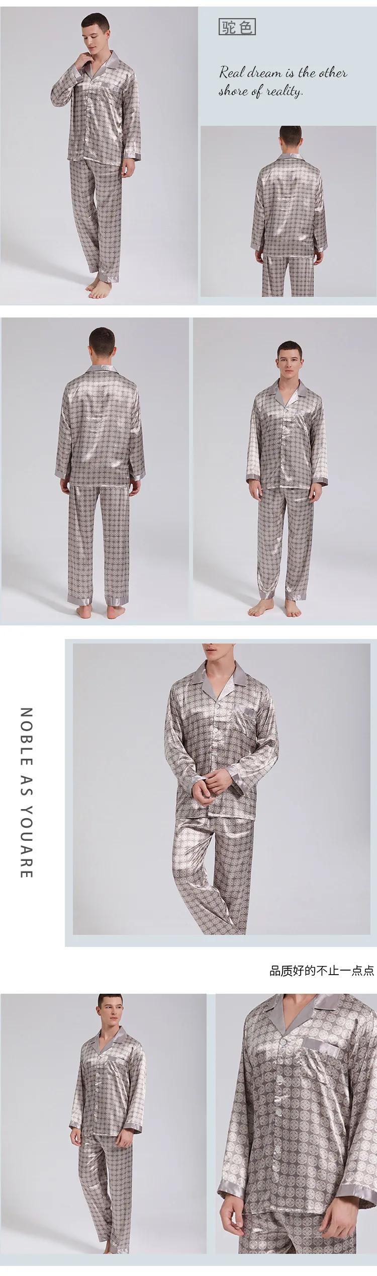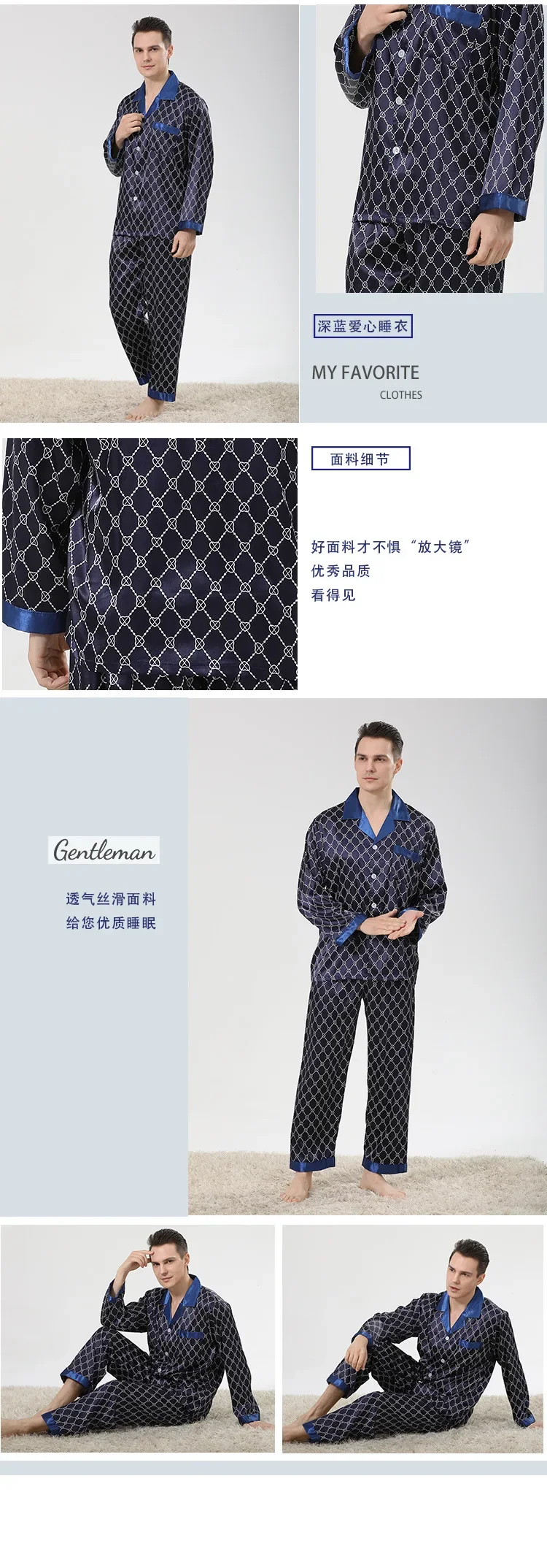 Men's Pyjamas Spring Soft Cozy Long Sleeve Sleepwear Set Thin Ice Silk Satin Nightwear Suit Male Top Pants Home Clothing Pajamas