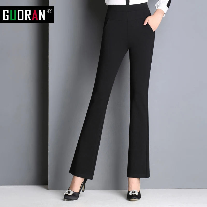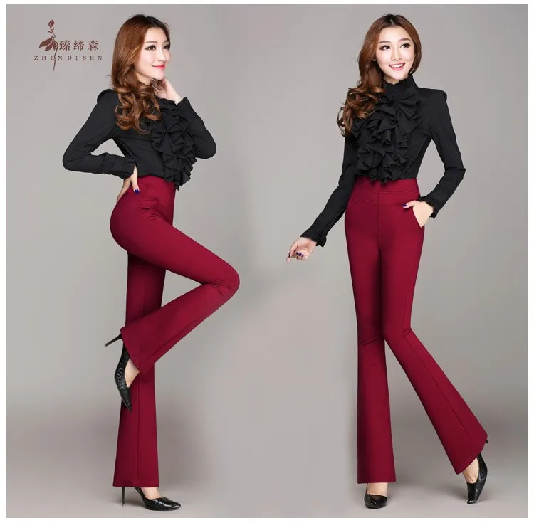 Vintage Office skinny Women Pants Trousers Zipper High Waist Pocket Flare pants formal OL Office Career Capris Work Wear Black